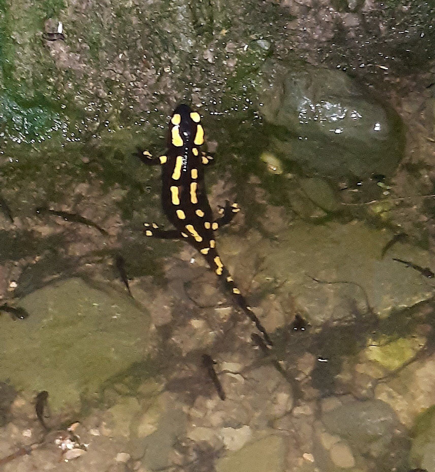 Regelmäßig "laichen" durch die Salamanderpest gerade stark gefährdete Feuersalamander im Räuschelbach. Doch seit einigen Jahren trocknet der Räuschelbach nach Regenfällen schon innerhalb weniger Tage aus. Künstlich angelegte Gumpen werden bei Starkregen regelmäßig leergespült.